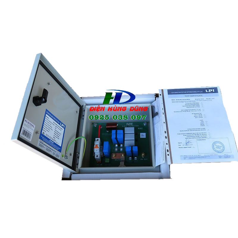 - Vỏ Thiết bị cắt lọc sét kim loại chắc chắn: Kích thước khoảng 400 x 400 x 150 mm, trọng lượng ~10 kg, chống nhiễu điện từ (EMI).